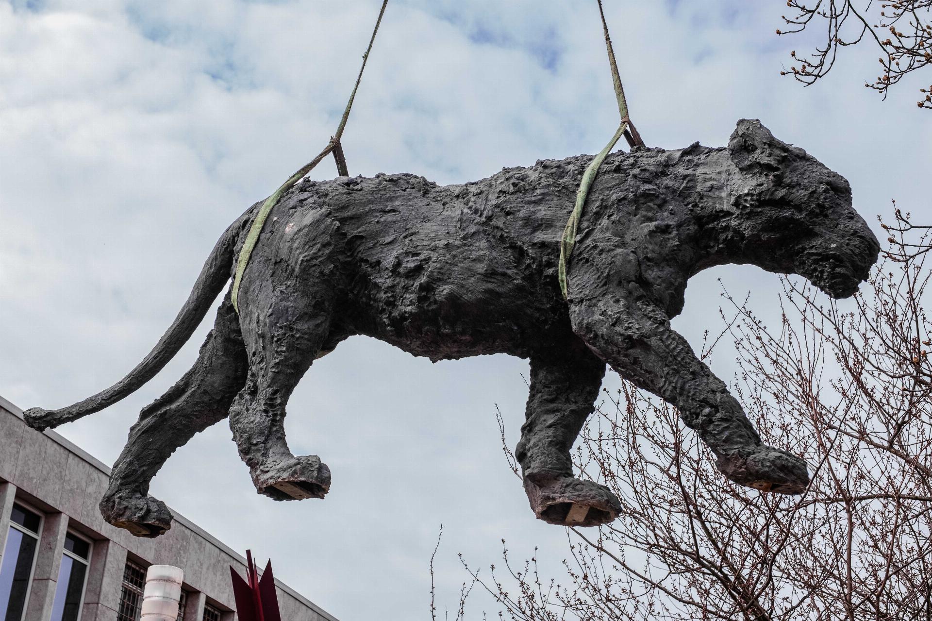 Davide Rivalta is internationally renowned for his monumental, naturalistic sculptures of wild animals – lions, wolves, rhinoceroses, buffaloes and horses – installed directly in public spaces without pedestals. Through this gesture, a subtle shift occurs: the animals appear as if they have temporarily reclaimed the urban environment.